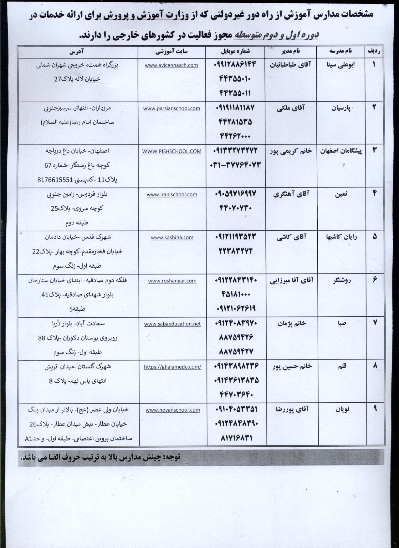 لیست به روز شده اسامی مدارس آموزش از راه دور غیر دولتی خارج از کشور
